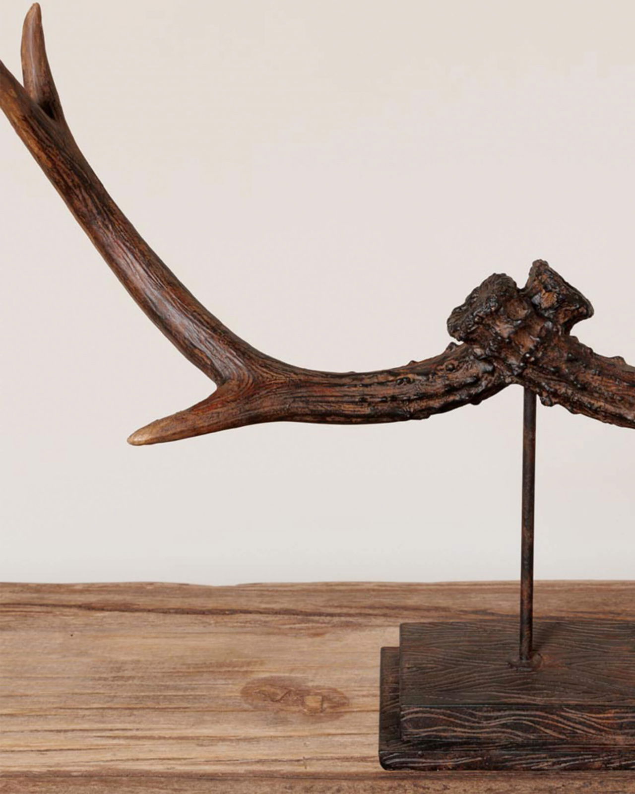The stylish decoration with artificial reindeer horns on a stand is an eye-catching detail that brings a rustic and natural feeling to your home.