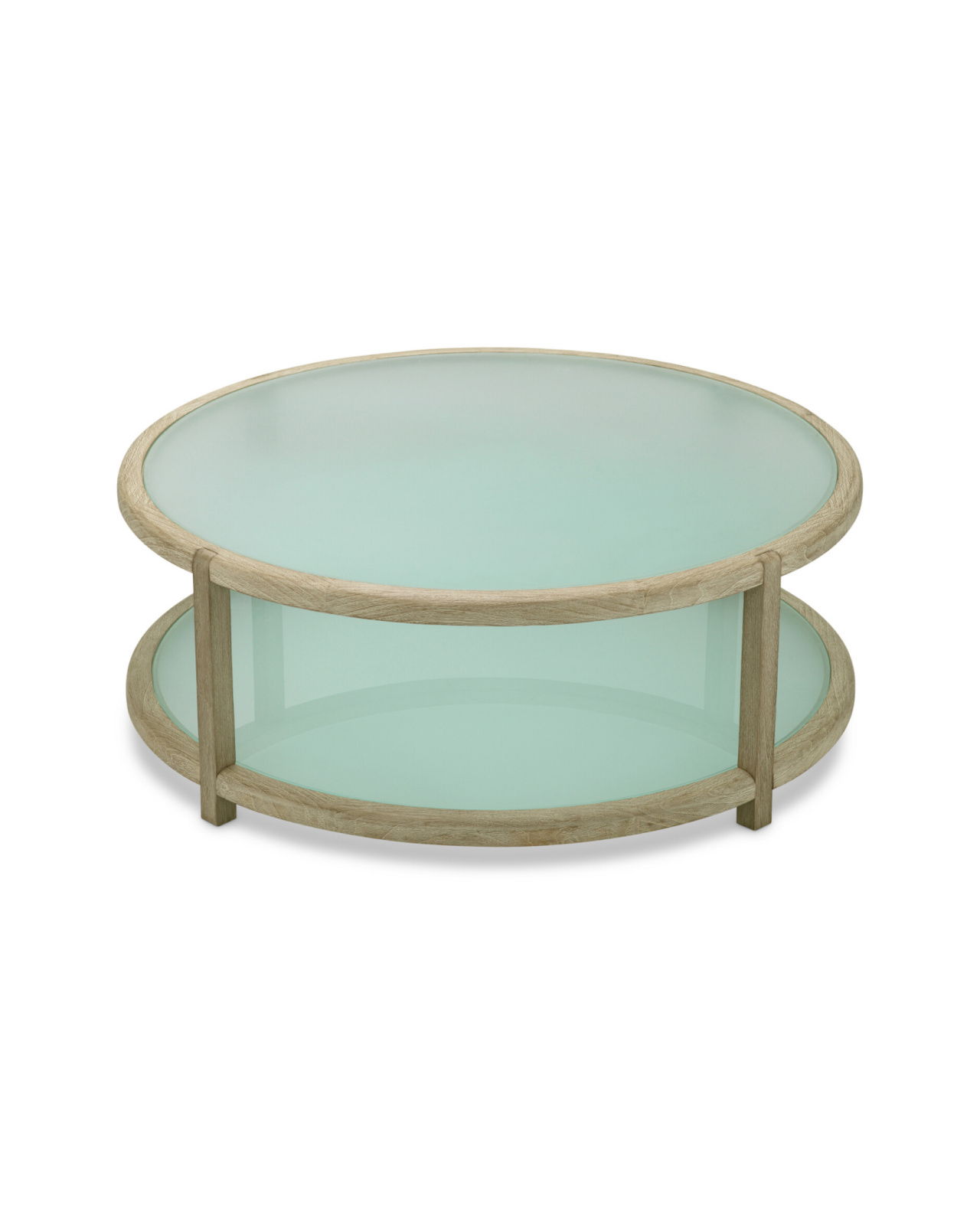 Immerse in sophistication with the Outdoor Coffee Table Anthony, showcasing the magnificent blend of aged teak and milky glass.